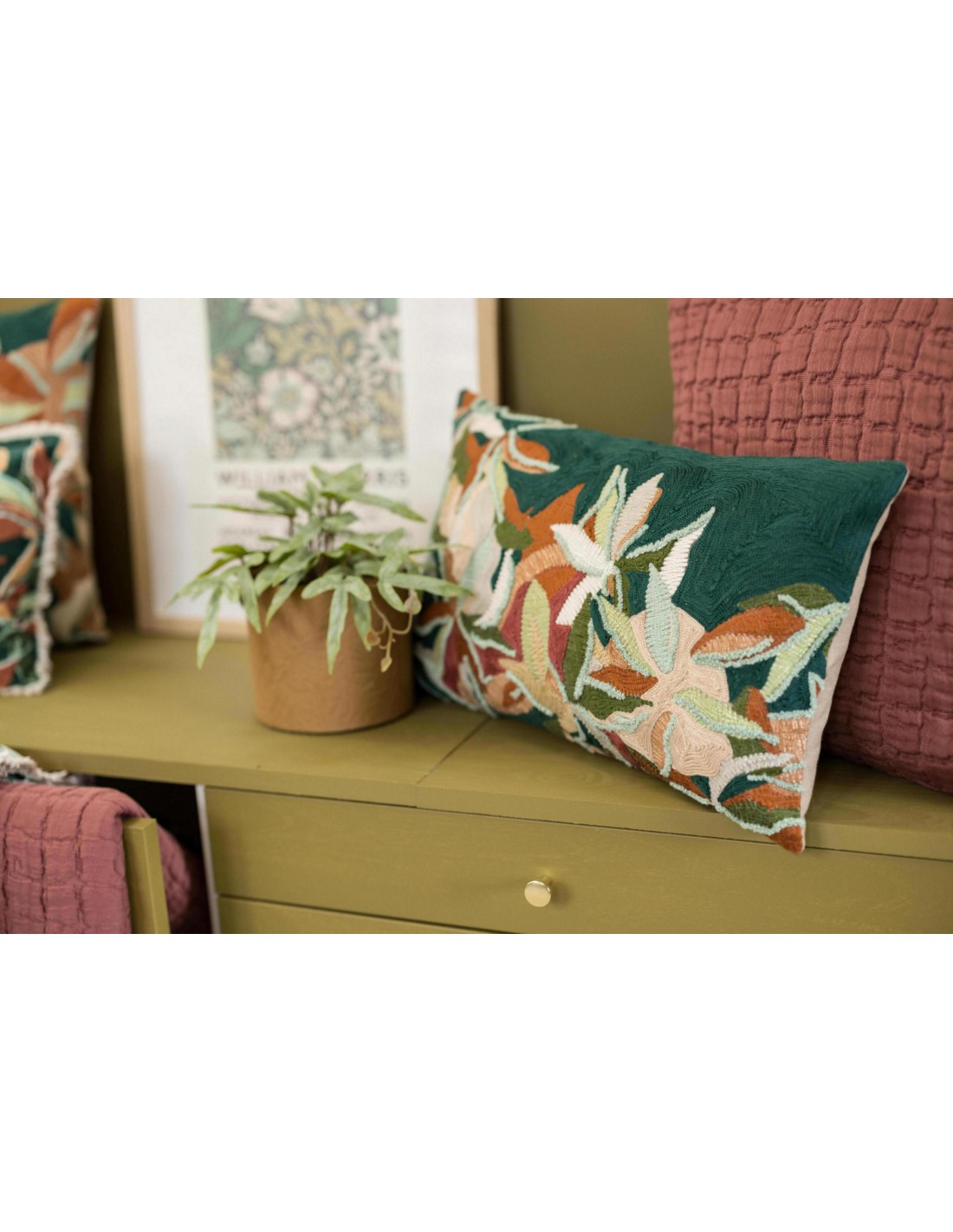 Προσθέστε άνεση και στυλ στον εσωτερικό σας χώρο με αυτό το μαξιλάρι Alina της μάρκας Vivaraise. Μαλακό και άνετο, αυτό το μαξιλάρι είναι επίσης πολύ αισθητικό χάρη στο ύφασμά του με ένα πολύχρωμο βοτανικό μοτίβο.  Αυτό το μαξιλάρι είναι κατασκευασμένο από βαμβακερό βελούδο και βαμβάκι. Αφαιρείται εύκολα χάρη στο αόρατο κλείσιμο με φερμουάρ.