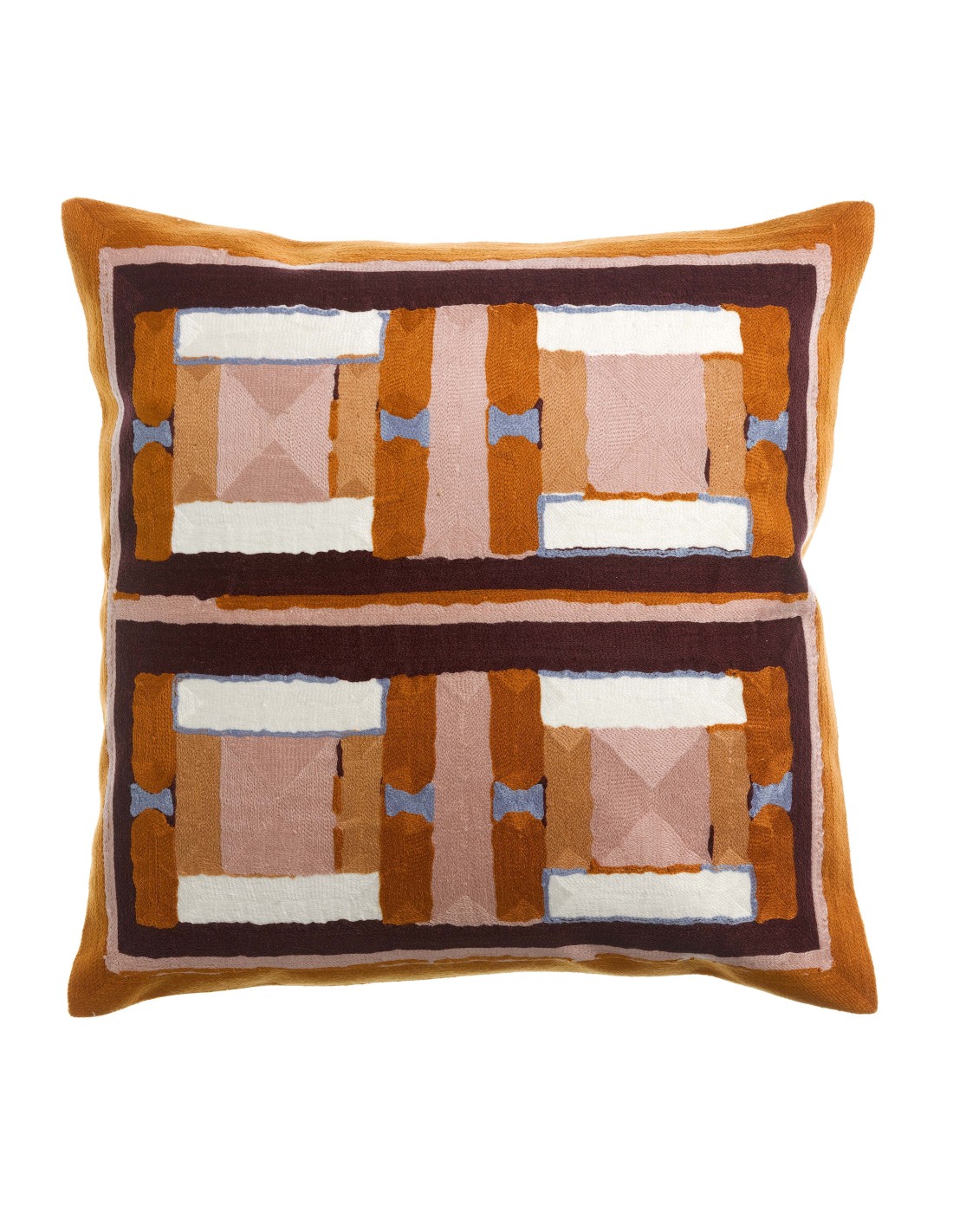 Οι σύγχρονες εθνικές επιρροές εκφράζονται στα κεντημένα γεωμετρικά σχέδια του μαξιλαριού από τη σειρά Taho, δημιουργώντας μια πραγματική διακοσμητική υπογραφή από 100% βαμβάκι. Το αόρατο κλείσιμο με φερμουάρ ολοκληρώνει αυτό το άψογο φινίρισμα, διατηρώντας την κομψή αισθητική αυτού του χαρακτηριστικού κομματιού. Το chambray στην πίσω όψη δημιουργεί μια ελκυστική υφή που εξισορροπεί τέλεια την διακοσμητική ένταση της πρόσοψης, προσφέροντας ένα αποτέλεσμα τόσο άνετο όσο και αισθητικό.