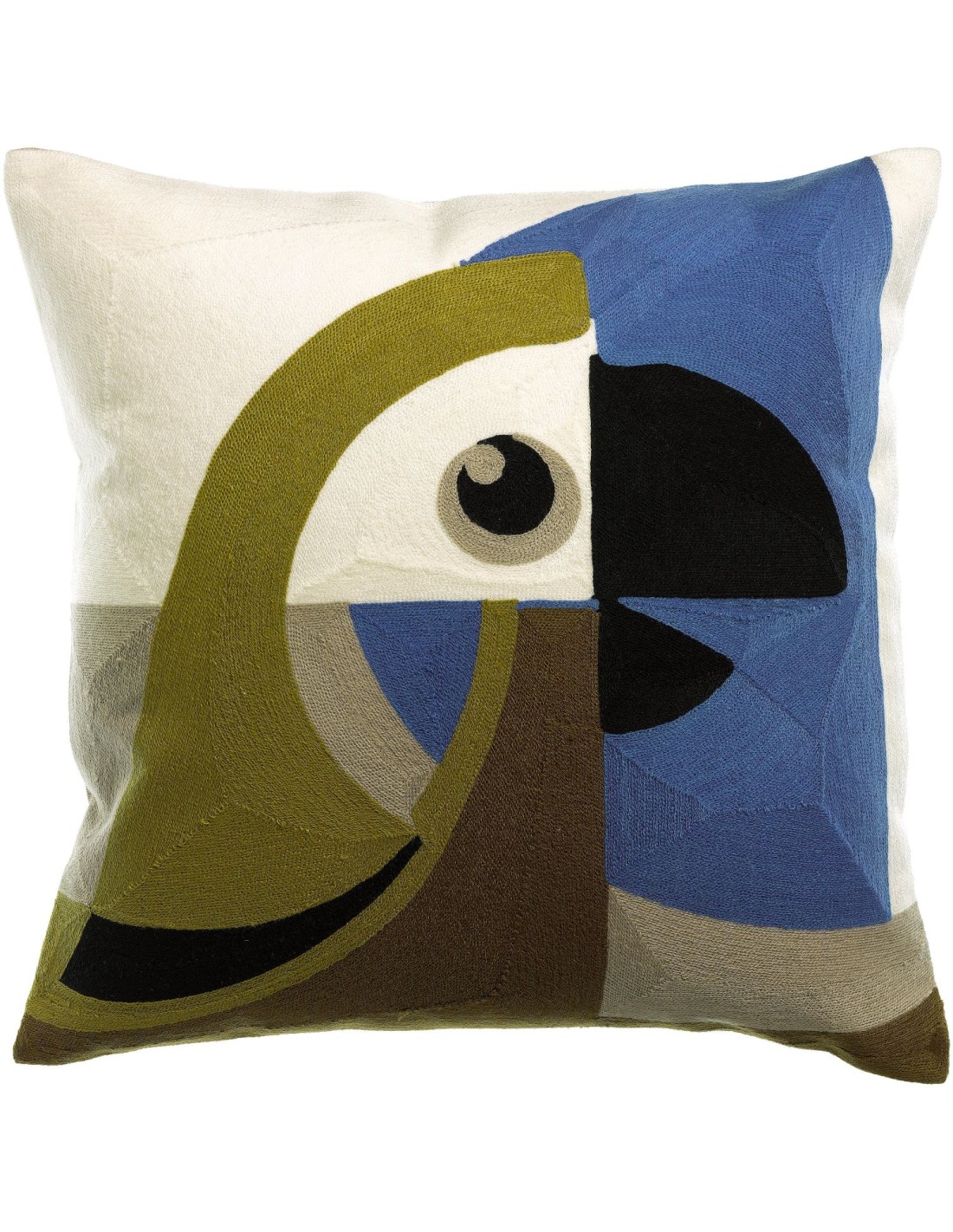 Δώστε χαρακτήρα στον χώρο σας με το μαξιλάρι Loro. Ένας στυλιζαρισμένος παπαγάλος, που αποδίδεται σαν γραφική απεικόνιση, είναι πυκνά κεντημένος πάνω σε καμβά από καθαρό βαμβάκι, δημιουργώντας όγκο και έντονη χρωματική αντίθεση. Σε έναν καναπέ, πολυθρόνα ή κρεβάτι, προσθέτει μια καλλιτεχνική, διακριτικά εξωτική ατμόσφαιρα και συμπληρώνει τόσο τη ζωντανή όσο και τη λιτή διακόσμηση.