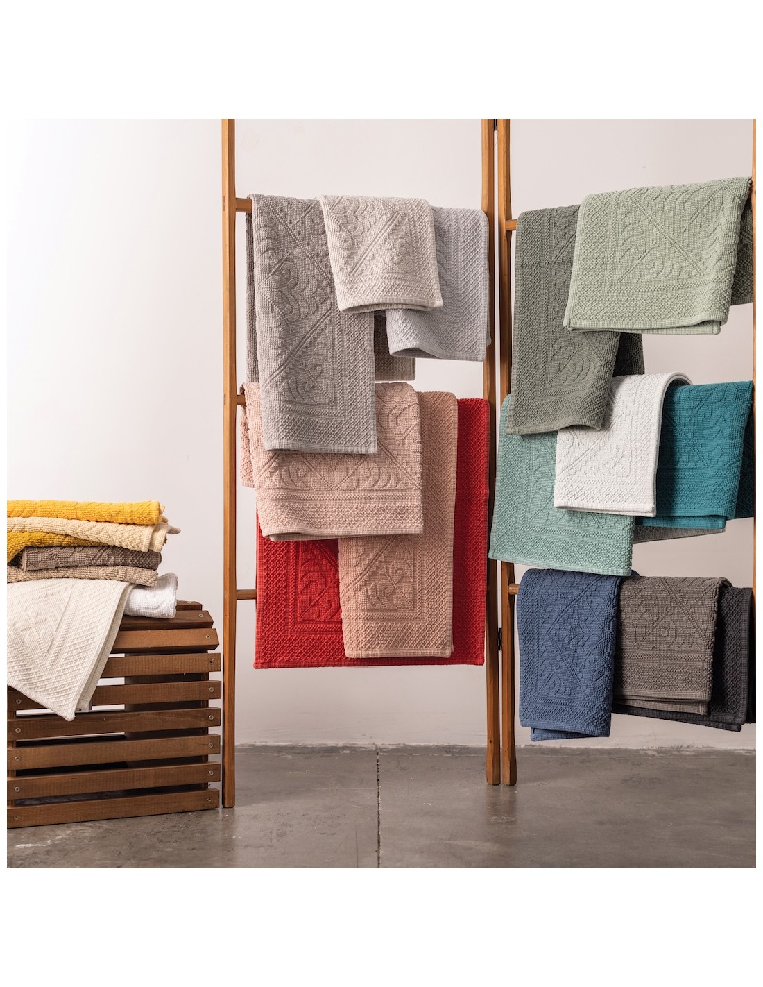 Discover the Enzo range of 100% cotton bath mats: rugs with a dense and durable jacquard weave and arabesques that will add color to your bathroom. Available in a very wide variety of colors, the hardest thing will be choosing yours!