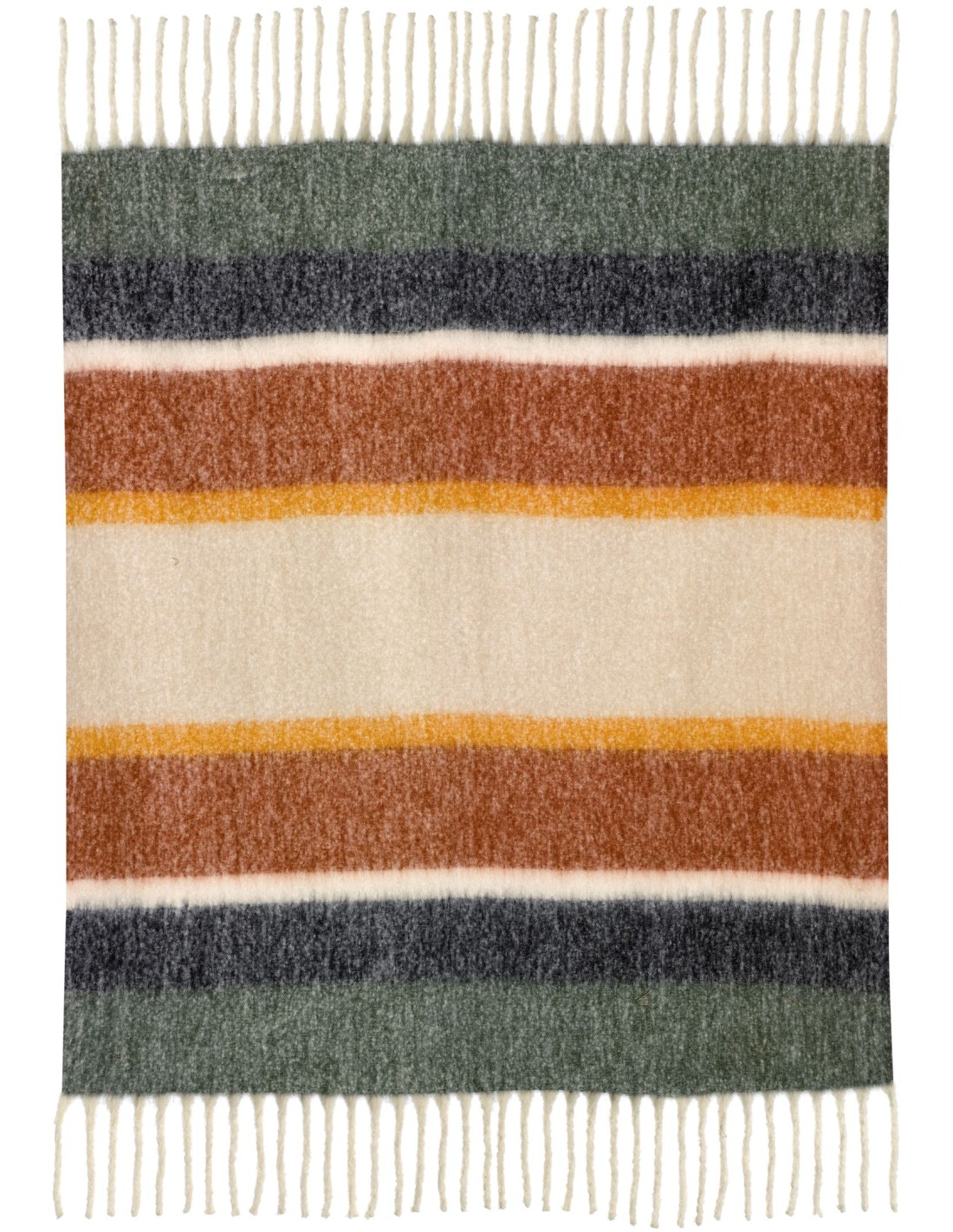 Create a real cozy nest with this Isabel throw brought to you by the Vivaraise brand! With its colorful stripes and twisted fringe finish, this throw is a real decorative piece that will bring a warm and friendly touch to your home. Eco-friendly, it is designed from 100% recycled polyester with a beautiful imitation mohair. Ideal for cold winter evenings, this thick blanket will give you a sense of diffused warmth. Easy to maintain, you can wash it in the washing machine up to 40 degrees.