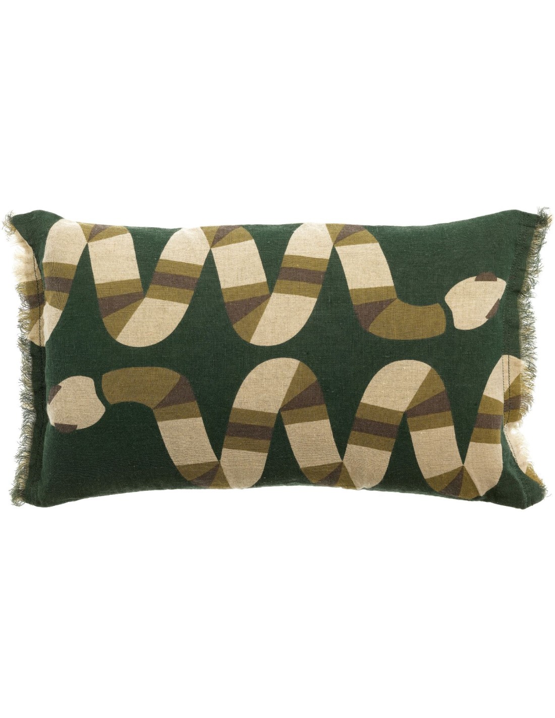Add a striking touch to your home with the Zeff Yoka decorative pillow. The pure linen front showcases a bold, graphic snake pattern, while the cotton back offers a soft, warm touch. The slight fringes at the edges add a relaxed texture and a handmade touch.